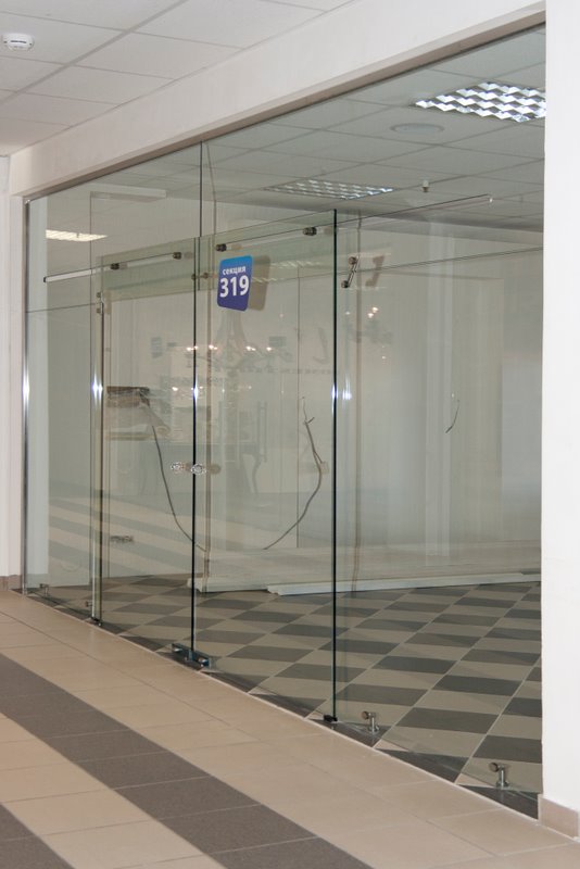 Цельностеклянная перегородка с раздвижной дверью