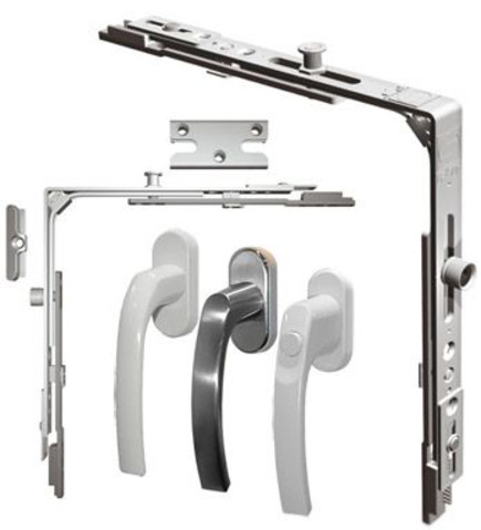 Прочный поворотный запор, который глубоко заходит в запирающую рейку и одновременно прижимает ее к рейке запора, что предотвращает взлом дверной панели при попытке вторжения.