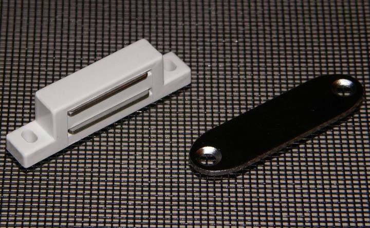 Состоит из двух планок, металлическая на полотне и магнитная на дверной раме. Такая защелка просто придерживает дверь в закрытом состоянии, при этом легко открывается и так же легко закрываются, не ударяясь и не царапаясь.